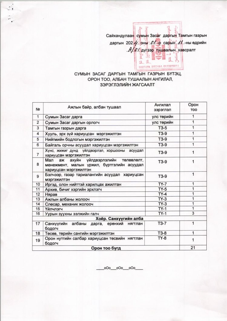 ТАМГЫН ГАЗРЫН БҮТЭЦ ОРОН ТОО 2024 ОН